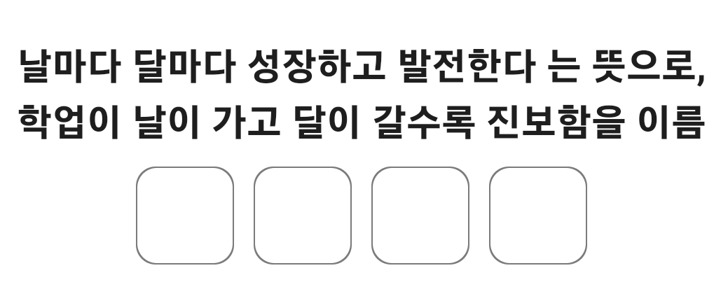 퀴즈정답 아이퀴즈 10월 13일 2시 정답 날마다 달마다 성장하고 발전한다 는 뜻으로, 학업이 날이 가고 달이 갈수록 진보함을 이름다음 한자의 훈과 음을 by sitego 2022. 10. 13. 아이퀴즈 10월 13일 2시 정답 날마다 달마다 성장하고 발전한다 는 뜻으로, 학업이 날이 가고 달이 갈수록 진보함을 이름다음 한자의 훈과 음을 아이퀴즈 02시 정답 일취월장 / 순임금 순 반응형 공유하기 게시글 관리 사이트 바로가기 '퀴즈정답' 카테고리의 다른 글 오늘은 포인트 적금 가입 이벤트 마지막날 입니다. 5만원 이상시 2천P 적립해드리고 있습니다. 맞으면 O, 틀리면 X를 선택해주세요! (0) 2023.02.28 아이퀴즈 10월 9일 3시 정답 3시 정답 <일가 친척에 속하는 무리나 한통속으로 지내는 사람들> 의 순우리말은? 아이한자아이퀴즈 10월 9일 (0) 2022.10.09 아이퀴즈 10월 8일 22시 정답 10시 송해가 샤워를 하고 나면? 다음 한자의 훈과 음을 적어주세요. 曝 (0) 2022.10.08 아이퀴즈 10월 8일 21시 정답 9시 소리 없이 글을 쓰는 사람은? (0) 2022.10.08 아이퀴즈 10월 8일 20시 정답 8시 <일을 잘 헤아려 처리하다> 의 순우리말은?다음 한자의 훈과 음을 적어주세요. 王 (0) 2022.10.08 관련글 오늘은 포인트 적금 가입 이벤트 마지막날 입니다. 5만원 이상시 2천P 적립해드리고 있습니다. 맞으면 O, 틀리면 X를 선택해주세요! 아이퀴즈 10월 9일 3시 정답 3시 정답 <일가 친척에 속하는 무리나 한통속으로 지내는 사람들> 의 순우리말은? 아이한자아이퀴즈 10월 9일 아이퀴즈 10월 8일 22시 정답 10시 송해가 샤워를 하고 나면? 다음 한자의 훈과 음을 적어주세요. 曝 아이퀴즈 10월 8일 21시 정답 9시 소리 없이 글을 쓰는 사람은? 댓글